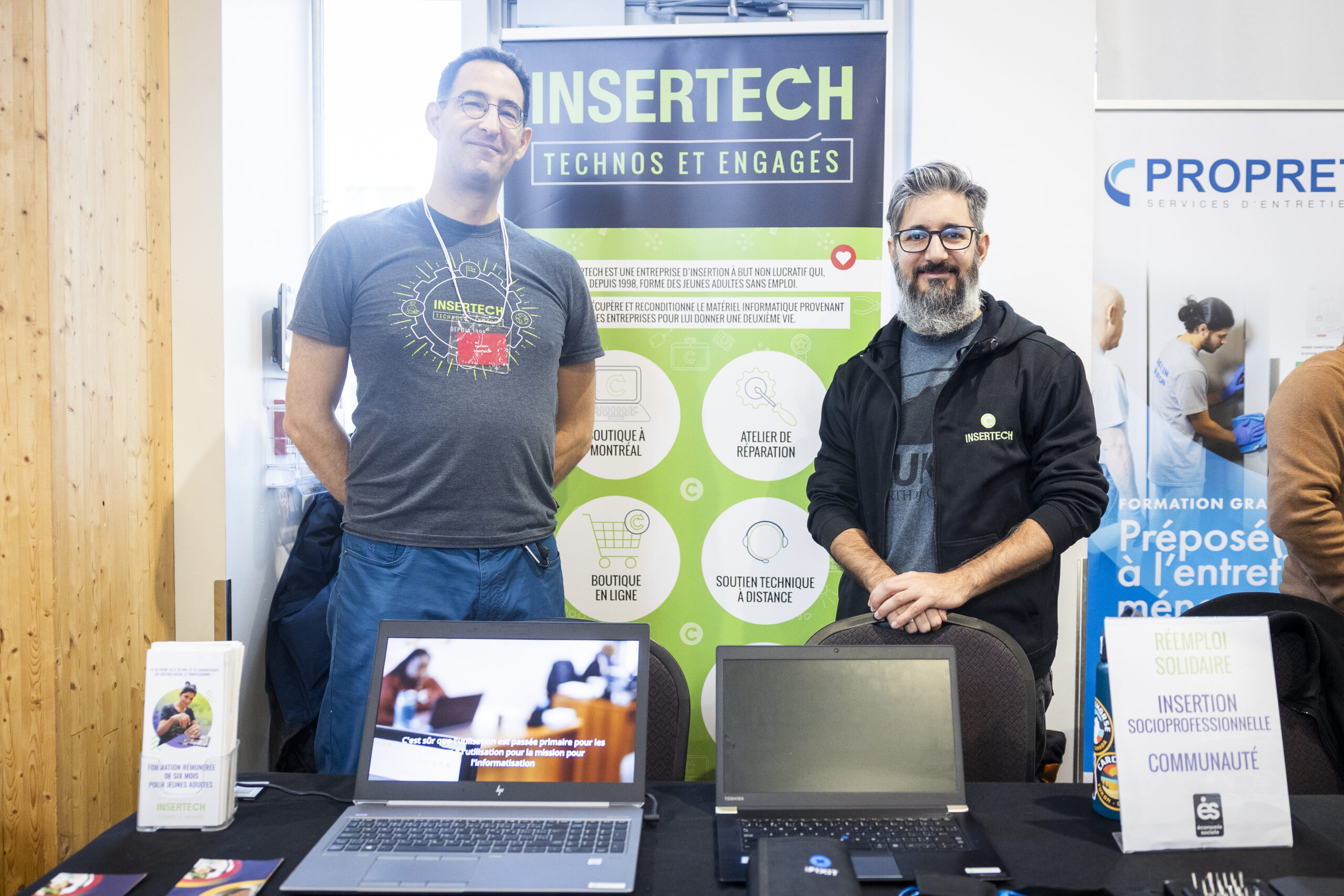 Nous sommes une entreprise d’insertion socioprofessionnelle spécialisée en reconditionnement de matériel informatique. Grâce aux ordinateurs, cellulaires, etc. récupérés de grandes entreprises, nous offrons à la communauté un guichet unique pour tous ses besoins technos : appareils de grande qualité abordables, services de réparation et formations.